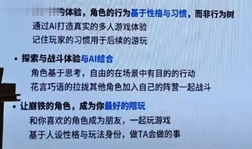 从帕姆AI可见,米哈游在大语言模型技术方面已相当成熟。而且,AI的应用并不局限于此。在上海交通大学举办的AI技术分享会上,崩铁项目组透露了他们未来计划借助AI开展的游戏项目。