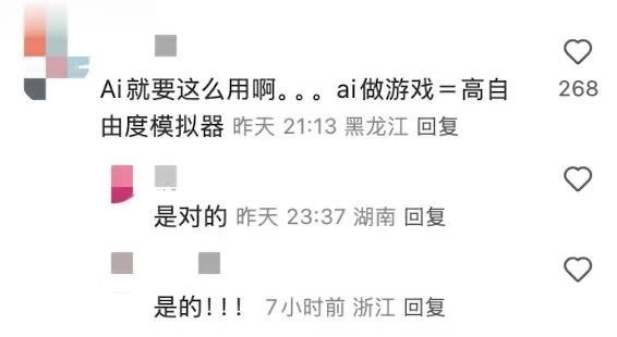 此消息一经发布,引发众多玩家欢呼。大家纷纷表示,这才是AI技术的正确应用方式,利用AI制作游戏的核心理念在于高自由度,能让玩家在游戏世界中拥有无限可能。