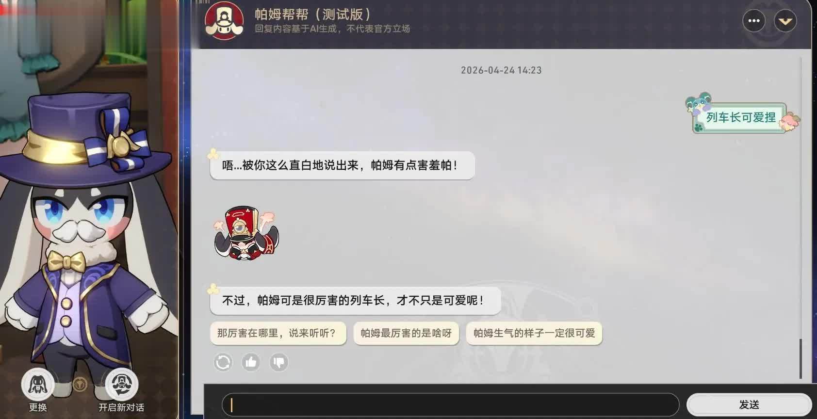 米哈游在《崩坏:星穹铁道》中对AI的运用,近期备受关注的当属新上线的“帕姆帮帮”功能。这是崩铁内置的大语言模型,玩家能够通过与帕姆AI交流,获取游戏攻略、剧情设定、角色情报等内容。同时,帕姆AI还是个出色的陪聊伙伴,不少玩家反馈能与其畅聊一整天。